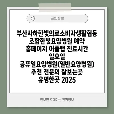 부산사하한빛의료소비자생활협동조합한빛요양병원은 2025년에도 많은 사람들에게 신뢰받는 일반요양병원으로 자리매김하고 있습니다. 이곳은 전연락와의 상담을 통해 정확한 진단과 효과적인 치료를 받을 수 있는 곳입니다. …