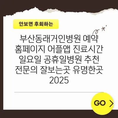 부산동래거인병원은 최신 예약 홈페이지와 어플앱을 통해 접근성이 뛰어난 의료 서비스를 알려알려드리겠습니다. 특히, 이곳은 일요일과 공휴일에도 운영되기 때문에 바쁜 일정을 가진 …