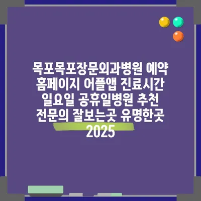 목포목포장문외과병원은 2025년에 더욱 발전된 진료서비스를 제공하고 있습니다. 특히, 예약 홈페이지 및 어플앱을 통해 편리하게 진료 예약이 할 수 있습니다. 병원의 …