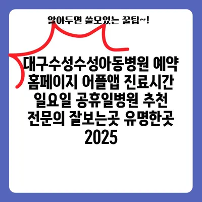 대구수성수성아동병원은 전문가들이 모여 아이들의 건강을 위해 헌신하는 곳입니다. 이 병원은 예약 홈페이지와 어플리케이션을 통해 쉽고 빠르게 진료를 예약할 수 있어 …