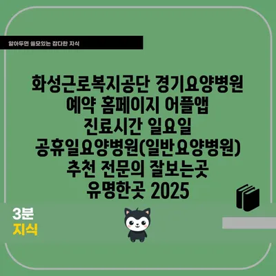 화성근로복지공단 경기요양병원은 2025년에도 많은 환자들로부터 신뢰받는 일반요양병원입니다. 병원의 예약은 홈페이지와 어플리케이션을 통해 간편하게 진행할 수 있어, 바쁜 일상 속에서도 쉽게 …